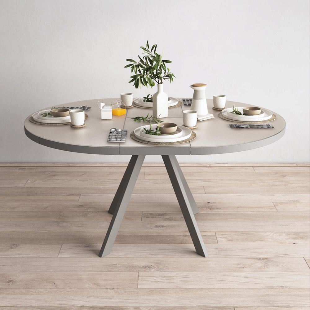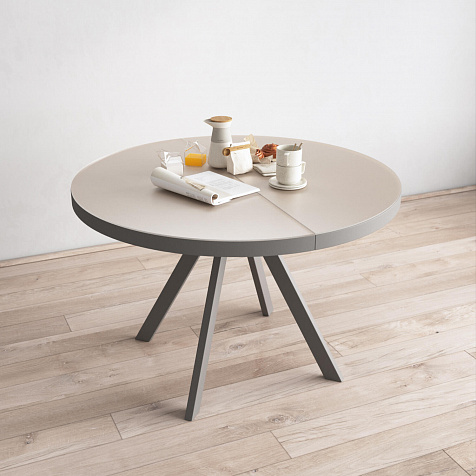 Раздвижной обеденный стол «DANTE» с круглой столешницей — решение для небольшой кухни или студии. Столешница расширяется на 40 см, поэтому на неё получится поставить ещё больше угощений. Благодаря центральной опоре всем гостям будет комфортно находиться за столом.