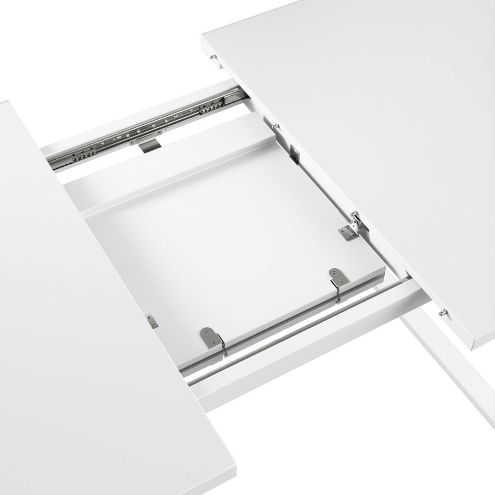 - Раздвижной механизм «бабочка». Боковины столешницы легко раздвигаются в стороны при помощи бесшумных направляющих, из подстолья вынимаются и разворачиваются две вставки из ЛДСтП, в результате чего ширина стола увеличивается на 40 см.