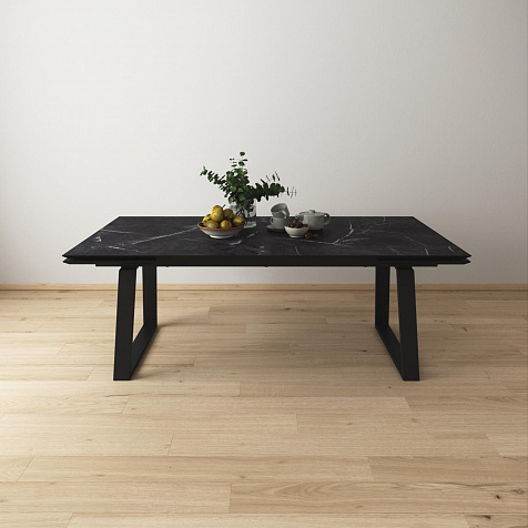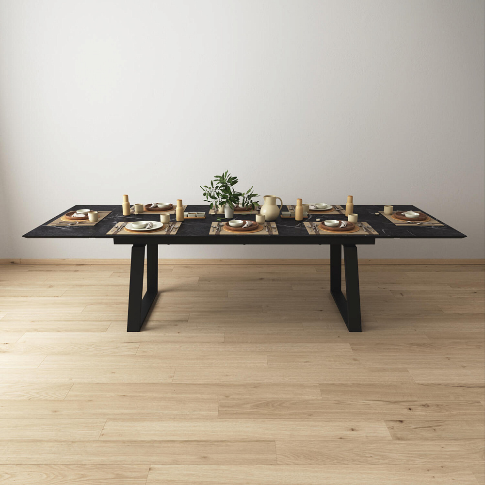 Широкий обеденный стол «Кейптаун» станет главным местом на кухне или столовой благодаря строгому и монументальному дизайну. Массивные металлические опоры в сочетании с природной текстурой столешницы создают стильный образ. Практичная поверхность устойчива к температурным воздействиям. Механизм раскладывания позволяет быстро увеличить базовую ширину столешницы с 200 до 290 см. За широким столом можно будет с легкостью разместить до 14 человек.