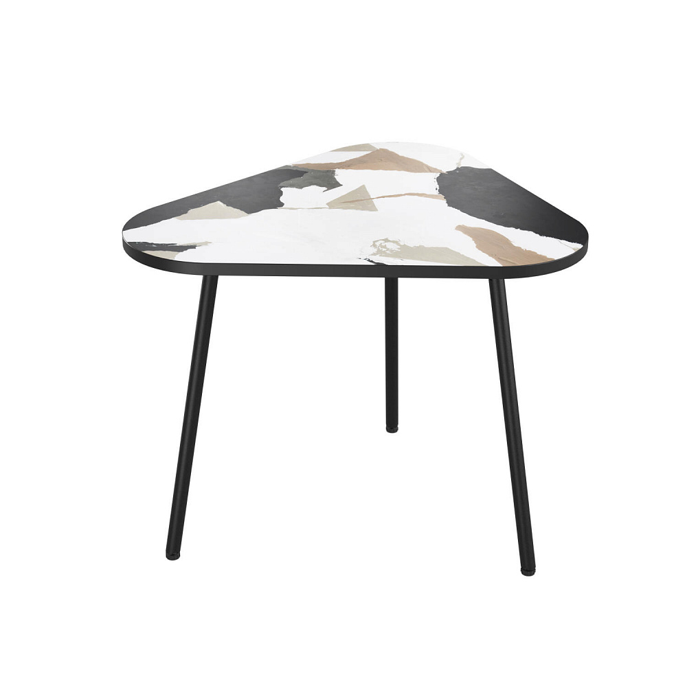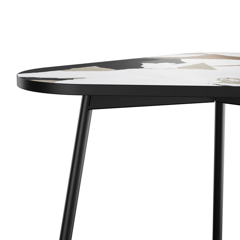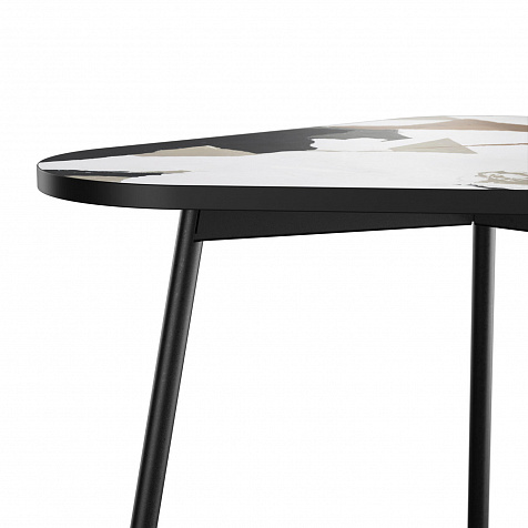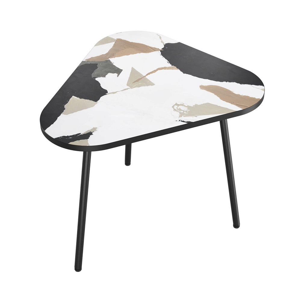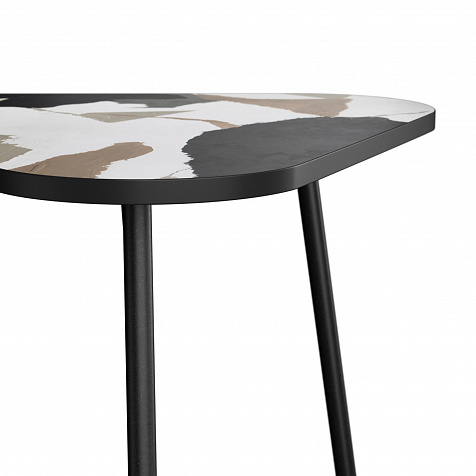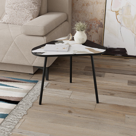 - Оригинальная столешница. Нестандартная треугольная форма с абстрактным принтом — модное решение для современного интерьера. Отсутствие острых углов обеспечивает дополнительный комфорт и безопасность.