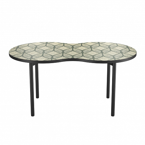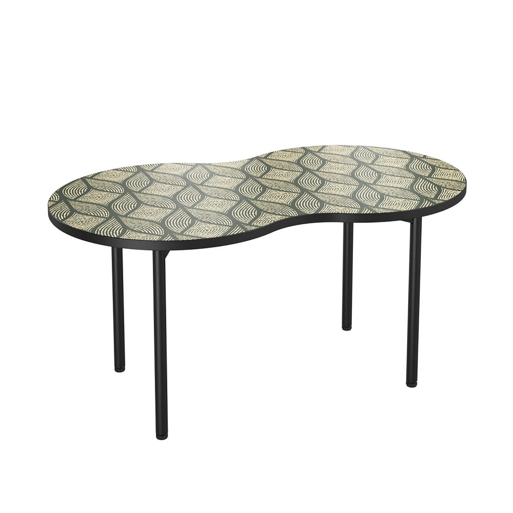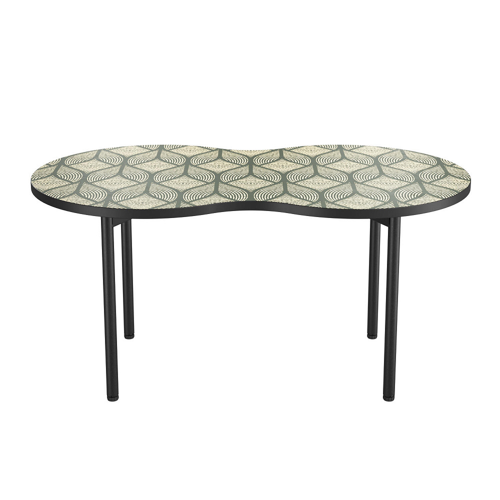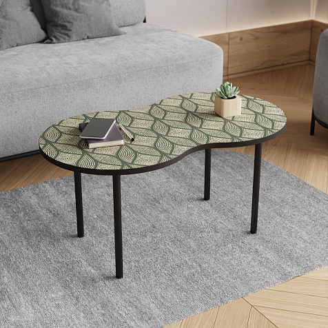- Оригинальная столешница. Нестандартная форма, напоминающая знак бесконечность, с печатью — модное решение для современного интерьера. Отсутствие острых углов обеспечивает дополнительный комфорт и безопасность.