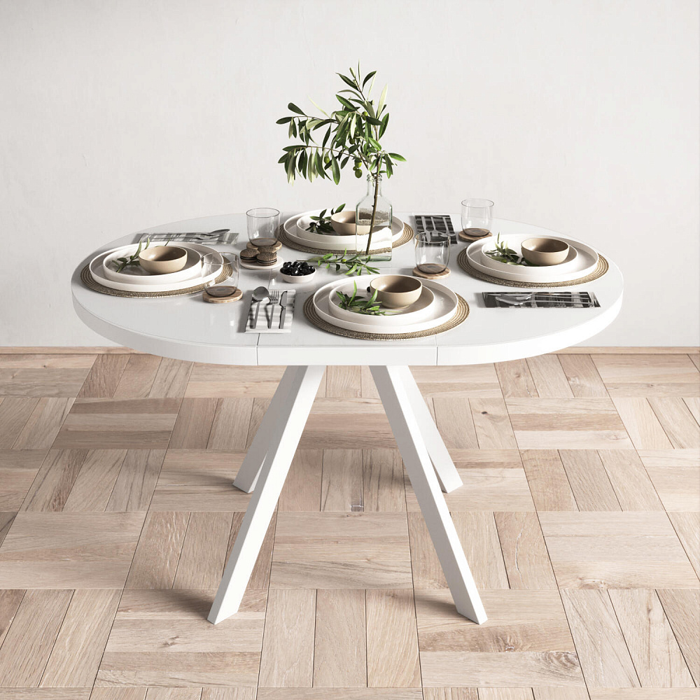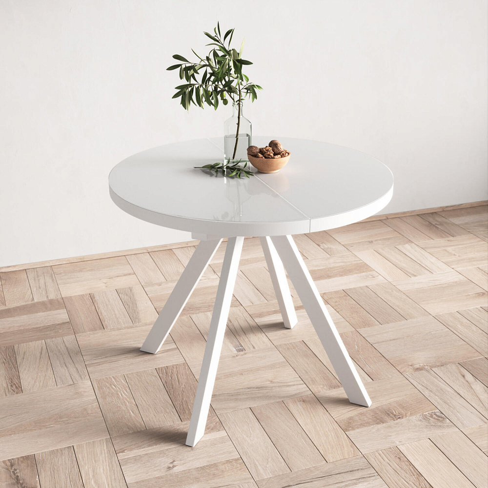 Раздвижной обеденный стол DANTE с круглой столешницей — решение для небольшой кухни или студии. Столешница расширяется на 35 см, поэтому на неё получится поставить ещё больше угощений. Благодаря центральной опоре всем гостям будет комфортно находиться за столом.