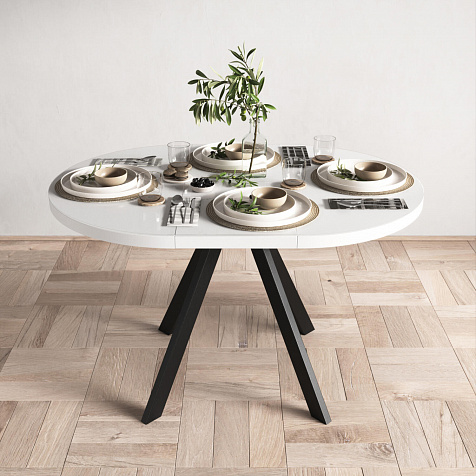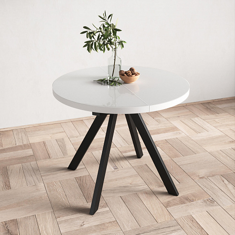 Раздвижной обеденный стол DANTE с круглой столешницей — решение для небольшой кухни или студии. Столешница расширяется на 35 см, поэтому на неё получится поставить ещё больше угощений. Благодаря центральной опоре всем гостям будет комфортно находиться за столом.
