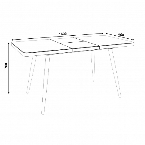 Габариты стола в разложенном виде: В760 х Ш1600 х Г800 мм.