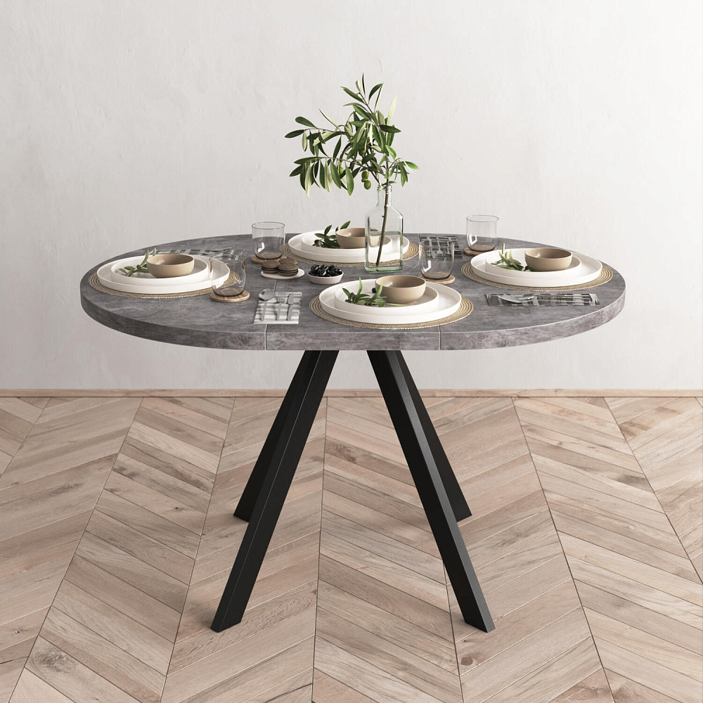 Раздвижной обеденный стол DANTE с круглой столешницей — решение для небольшой кухни или студии. Столешница расширяется на 35 см, поэтому на неё получится поставить ещё больше угощений. Благодаря центральной опоре всем гостям будет комфортно находиться за столом.