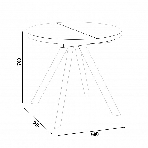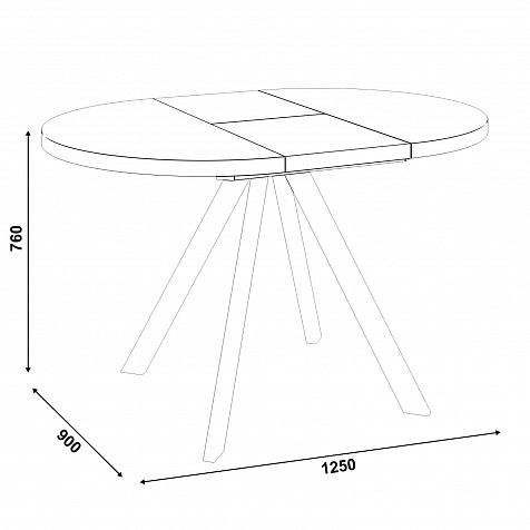 Габариты стола в разложенном виде: В760 х Ш1250 х Г900 мм.