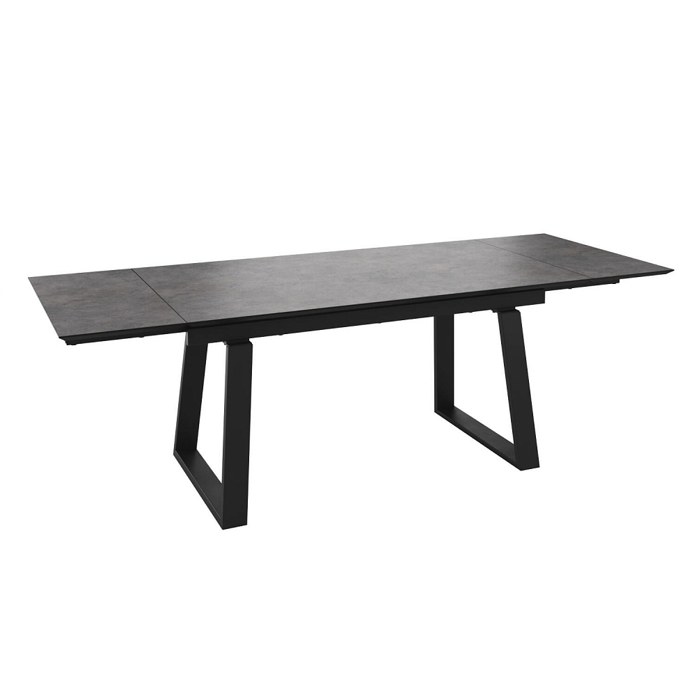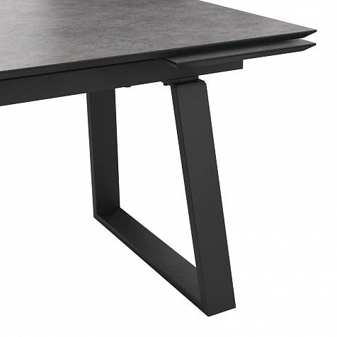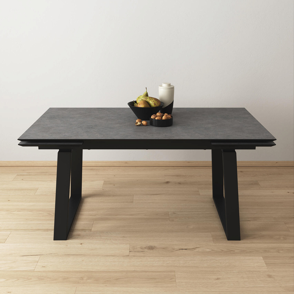 Широкий обеденный стол «Кейптаун» станет главным местом на кухне или столовой благодаря строгому и монументальному дизайну. Массивные металлические опоры в сочетании с природной текстурой столешницы создают стильный образ. Практичная поверхность устойчива к температурным воздействиям. Механизм раскладывания позволяет быстро увеличить базовую ширину столешницы со 160 до 240 см. За широким столом можно будет с легкостью разместить до 10–12 человек.