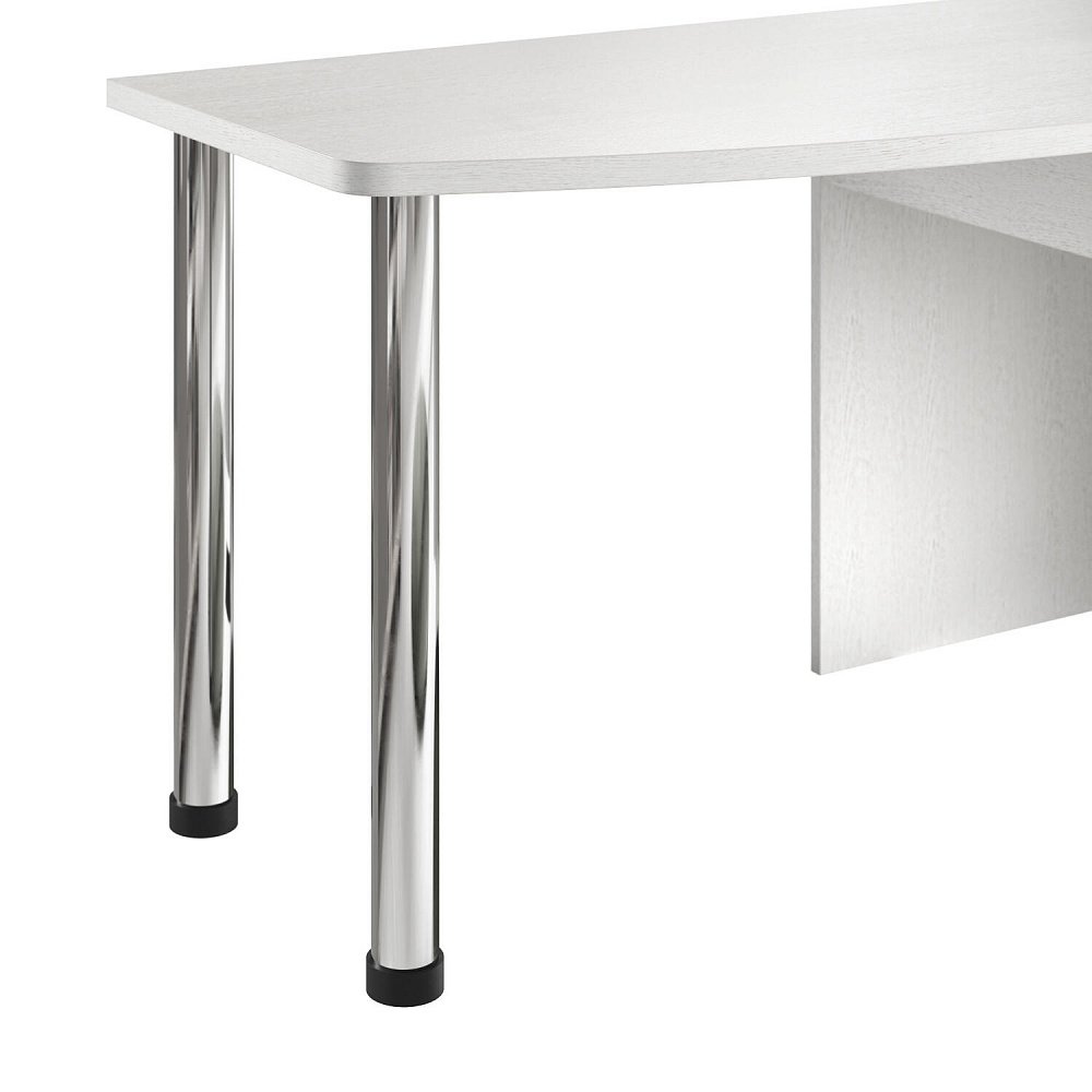 Хромированные опоры. С внешней стороны стола столешницу поддерживают две металлические регулируемые опоры, которые визуально облегчают конструкцию модели и позволяют устойчиво зафиксировать стол.