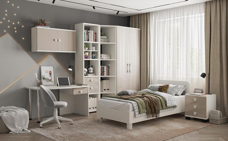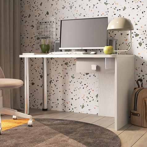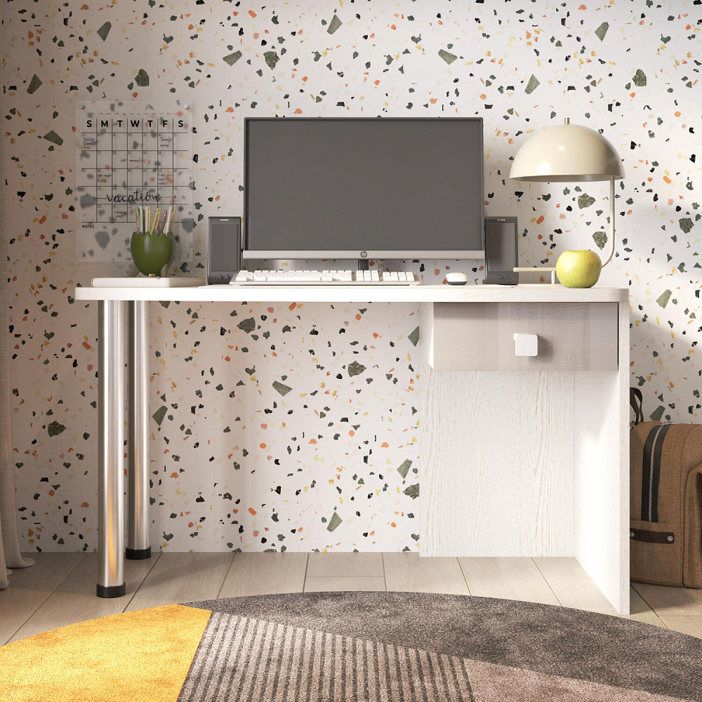 Эргономичная столешница. Просторная столешница закругленной формы позволяет поставить ноутбук, настольную лампу и разложить необходимые для учебы и творчества материалы.