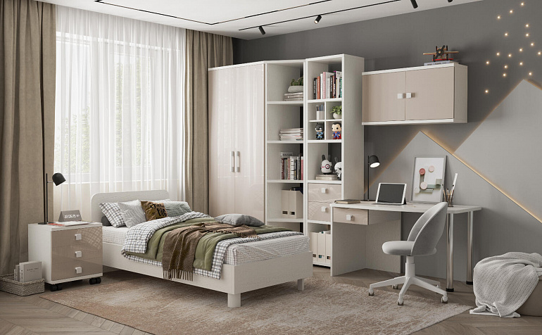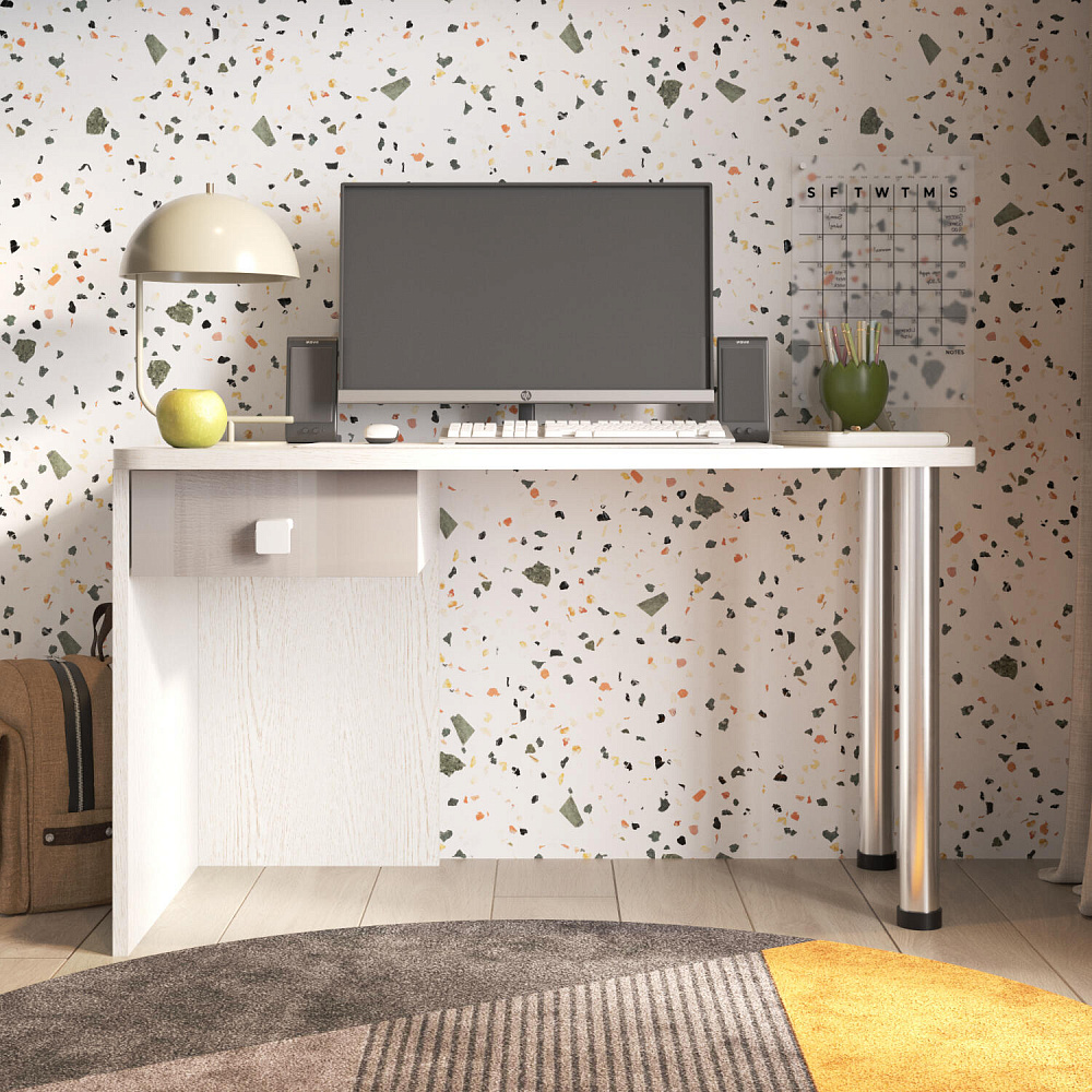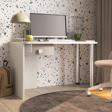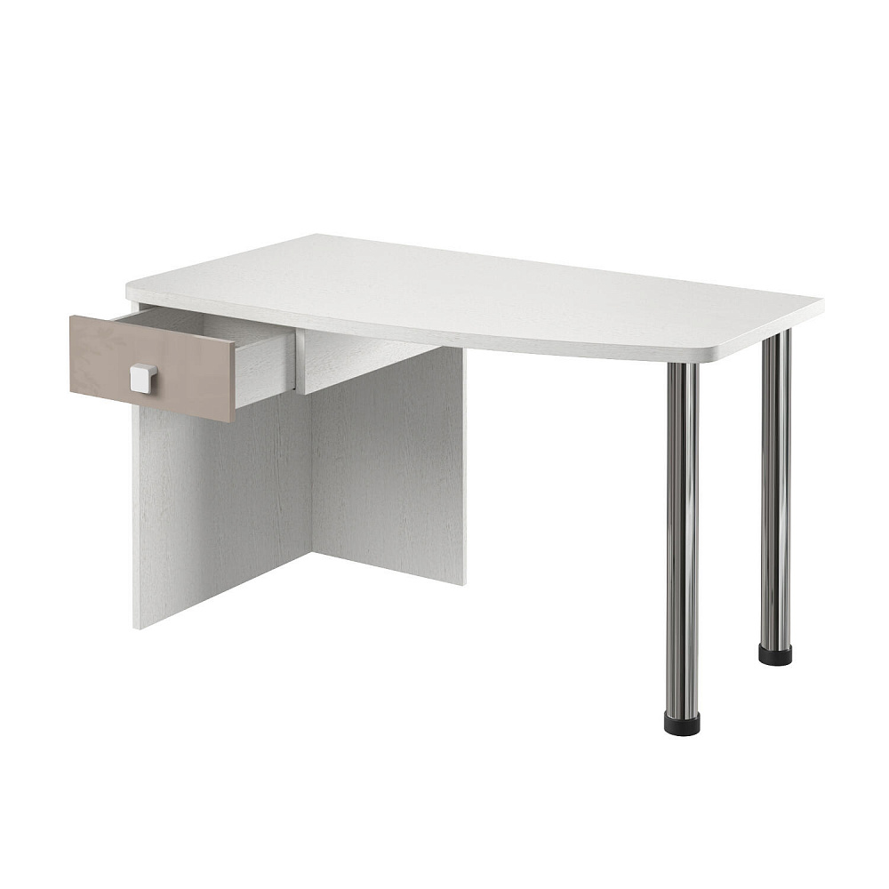 Эргономичная столешница. Просторная столешница закругленной формы позволяет поставить ноутбук, настольную лампу и разложить необходимые для учебы и творчества материалы.