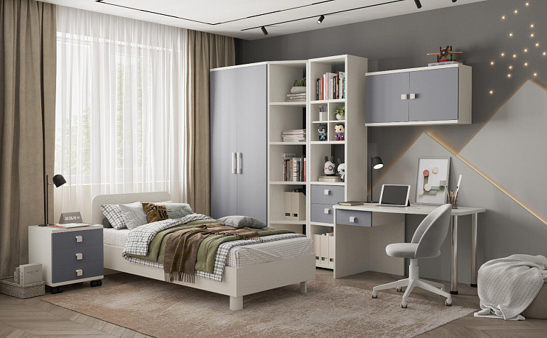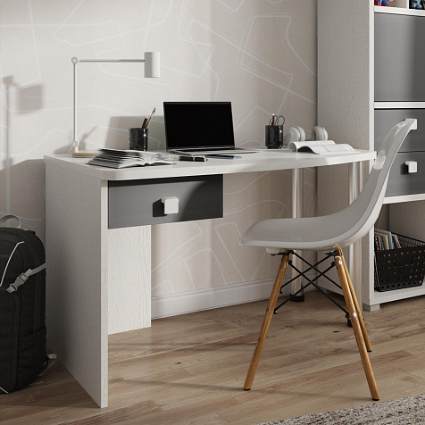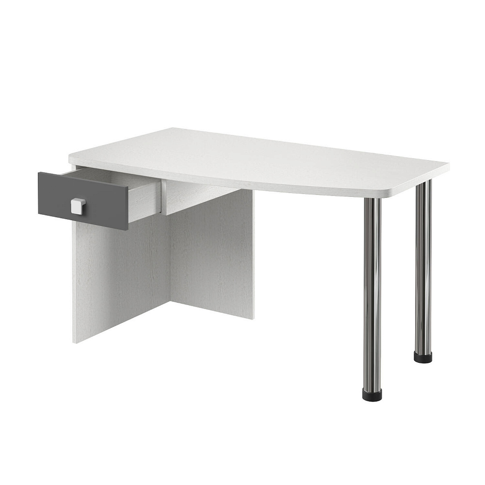 Эргономичная столешница. Просторная столешница закругленной формы позволяет поставить ноутбук, настольную лампу и разложить необходимые для учебы и творчества материалы.