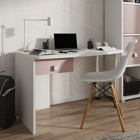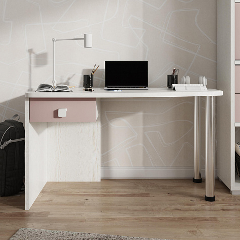 Эргономичная столешница. Просторная столешница закругленной формы позволяет поставить ноутбук, настольную лампу и разложить необходимые для учебы и творчества материалы.