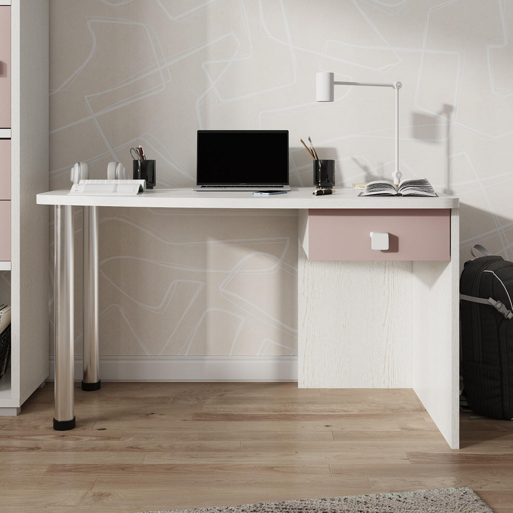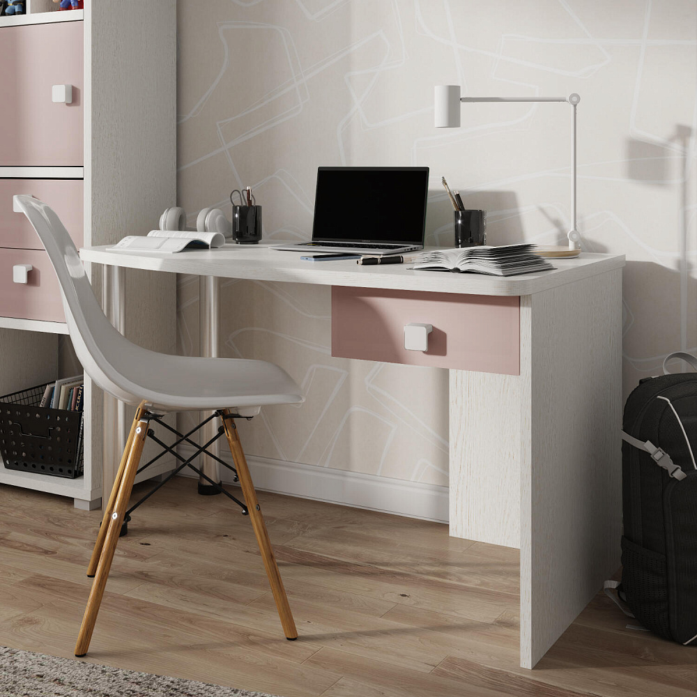Эргономичная столешница. Просторная столешница закругленной формы позволяет поставить ноутбук, настольную лампу и разложить необходимые для учебы и творчества материалы.