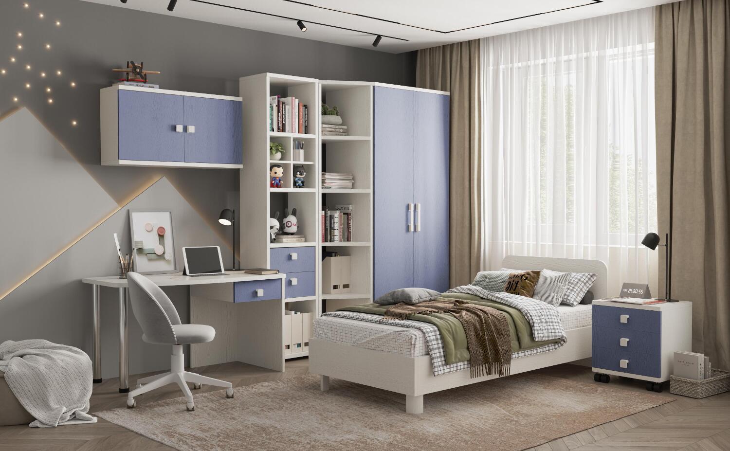 Эргономичная столешница. Просторная столешница закругленной формы позволяет поставить ноутбук, настольную лампу и разложить необходимые для учебы и творчества материалы.