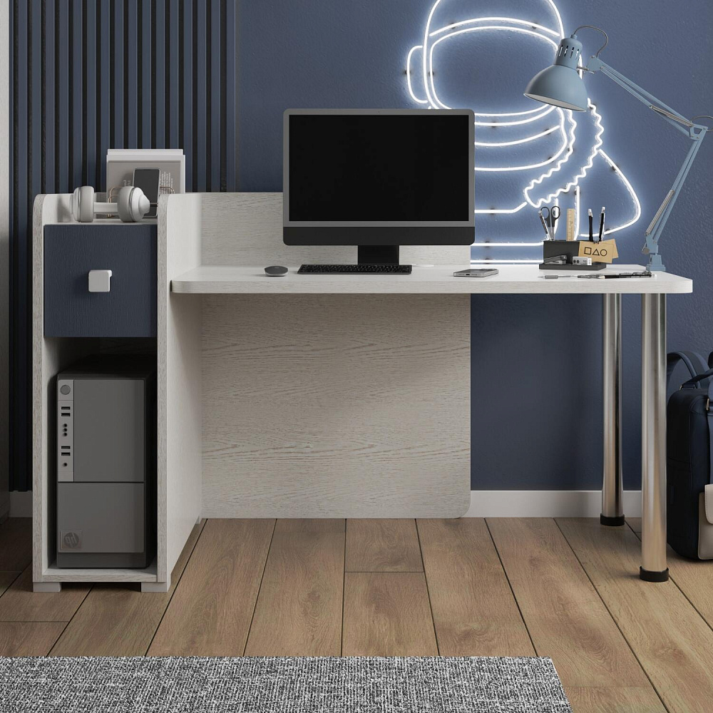 Компьютерный стол «Тиана» можно установить как в угол комнаты, так и к стене. Эргономичная модель с вместительной столешницей и продуманной системой хранения позволит организовать практичное рабочее место в детской или молодёжной комнате.