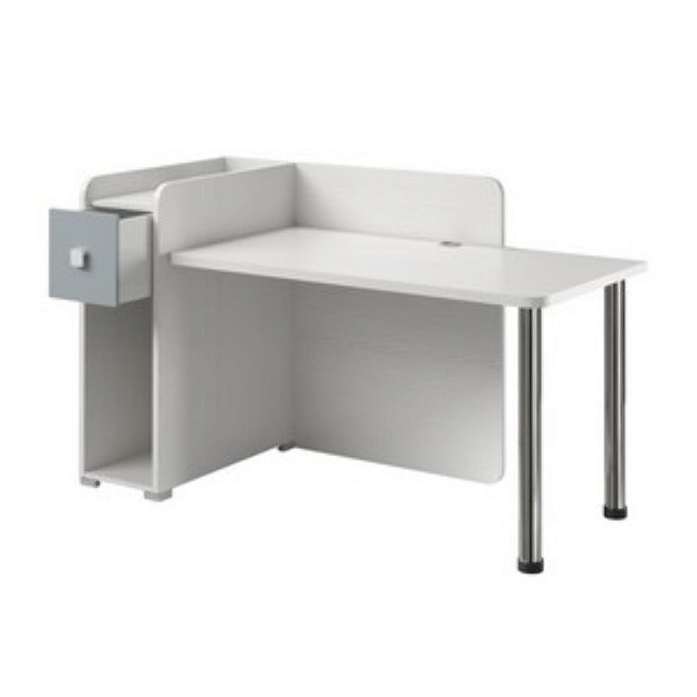 Компьютерный стол «Тиана» можно установить как в угол комнаты, так и к стене. Эргономичная модель с вместительной столешницей и продуманной системой хранения позволит организовать практичное рабочее место в детской или молодёжной комнате.