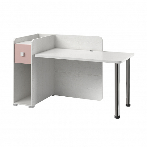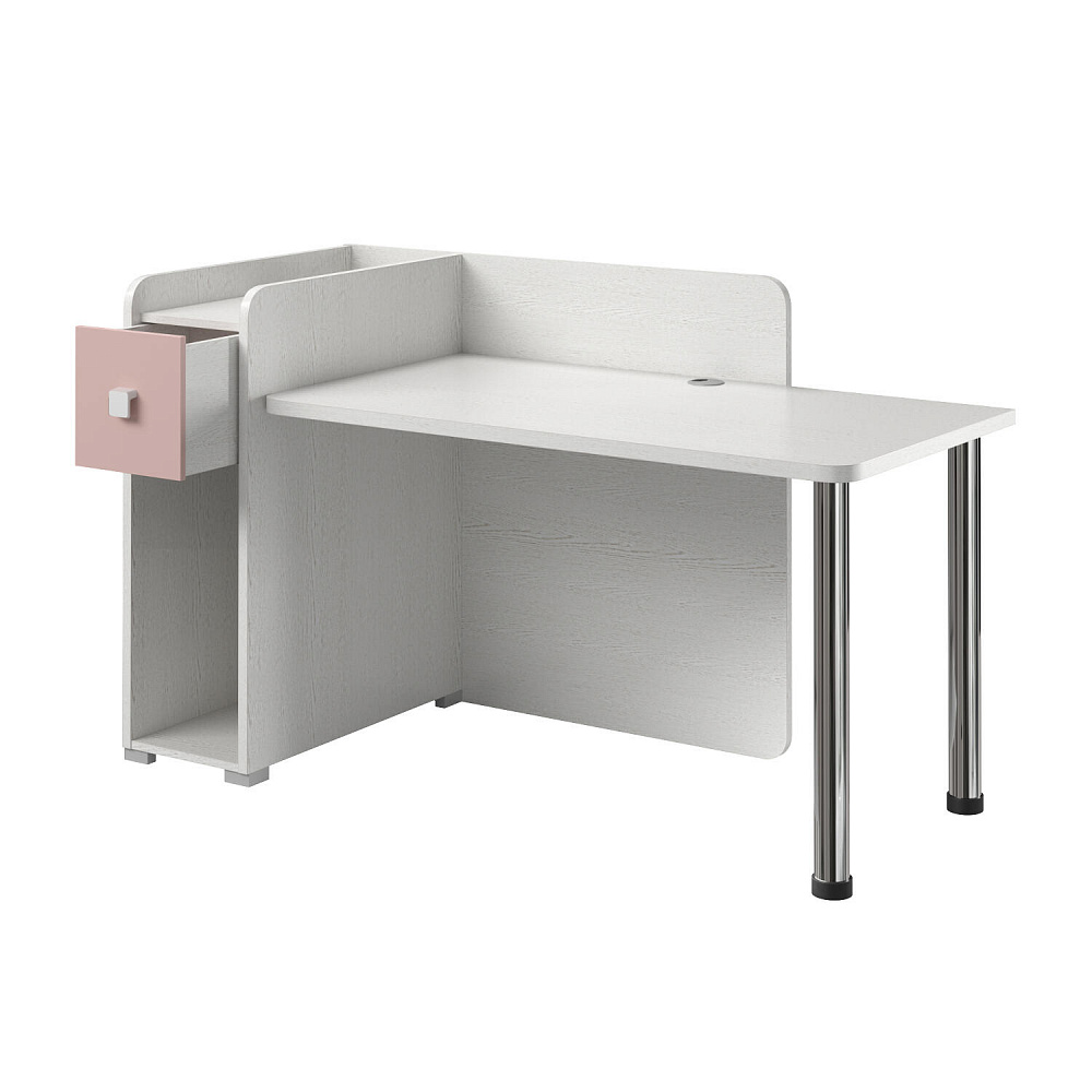 Просторная столешница. Широкая столешница позволяет установить компьютер и разложить необходимые для учёбы и творчества предметы. В крышке стола предусмотрено отверстие с заглушкой для вывода проводов.
