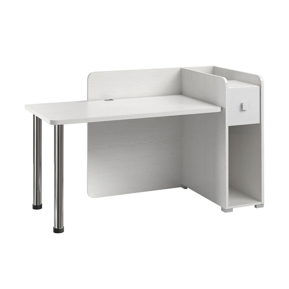 Просторная столешница. Широкая столешница позволяет установить компьютер и разложить необходимые для учёбы и творчества предметы. В крышке стола предусмотрено отверстие с заглушкой для вывода проводов.