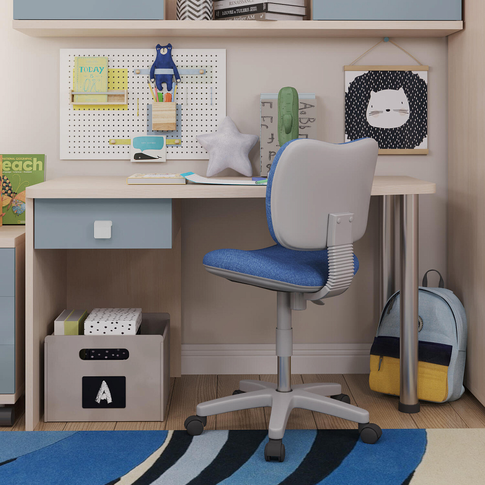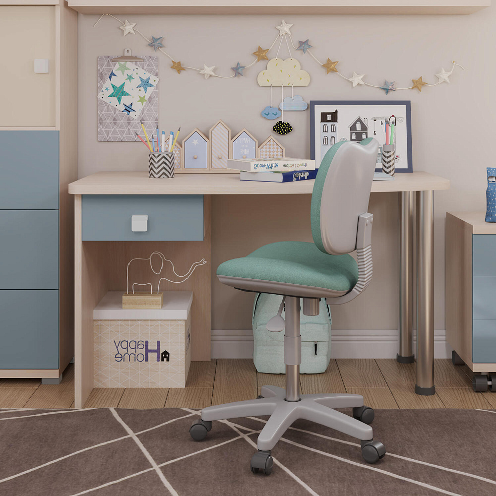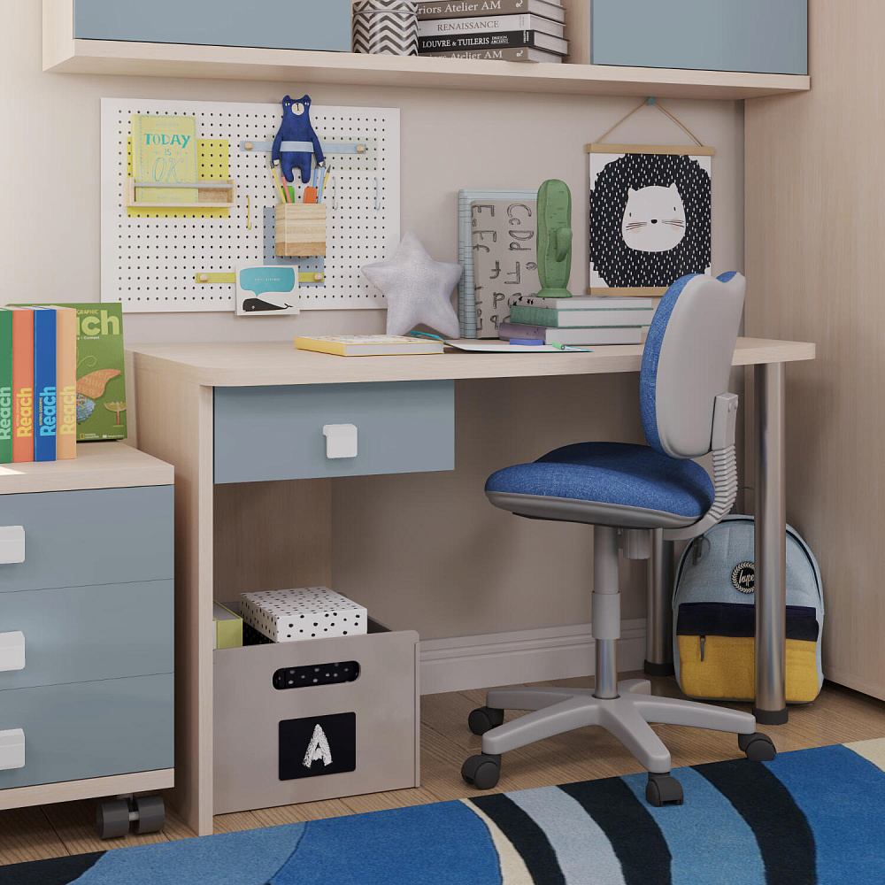 Эргономичная столешница. Просторная столешница закругленной формы позволяет поставить ноутбук, настольную лампу и разложить необходимые для учебы и творчества материалы.