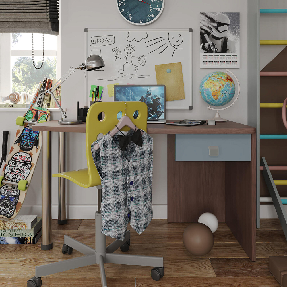 Эргономичная столешница. Просторная столешница закругленной формы позволяет поставить ноутбук, настольную лампу и разложить необходимые для учебы и творчества материалы.