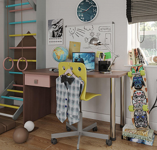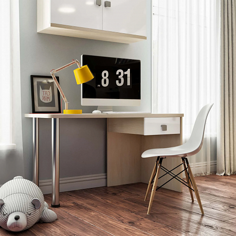Эргономичная столешница. Просторная столешница закругленной формы позволяет поставить ноутбук, настольную лампу и разложить необходимые для учебы и творчества материалы.