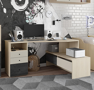 Письменный стол «Тиана» можно установить как в угол комнаты, так и к стене. Практичная модель с вместительной столешницей позволит организовать удобное рабочее место в детской или молодёжной комнате.