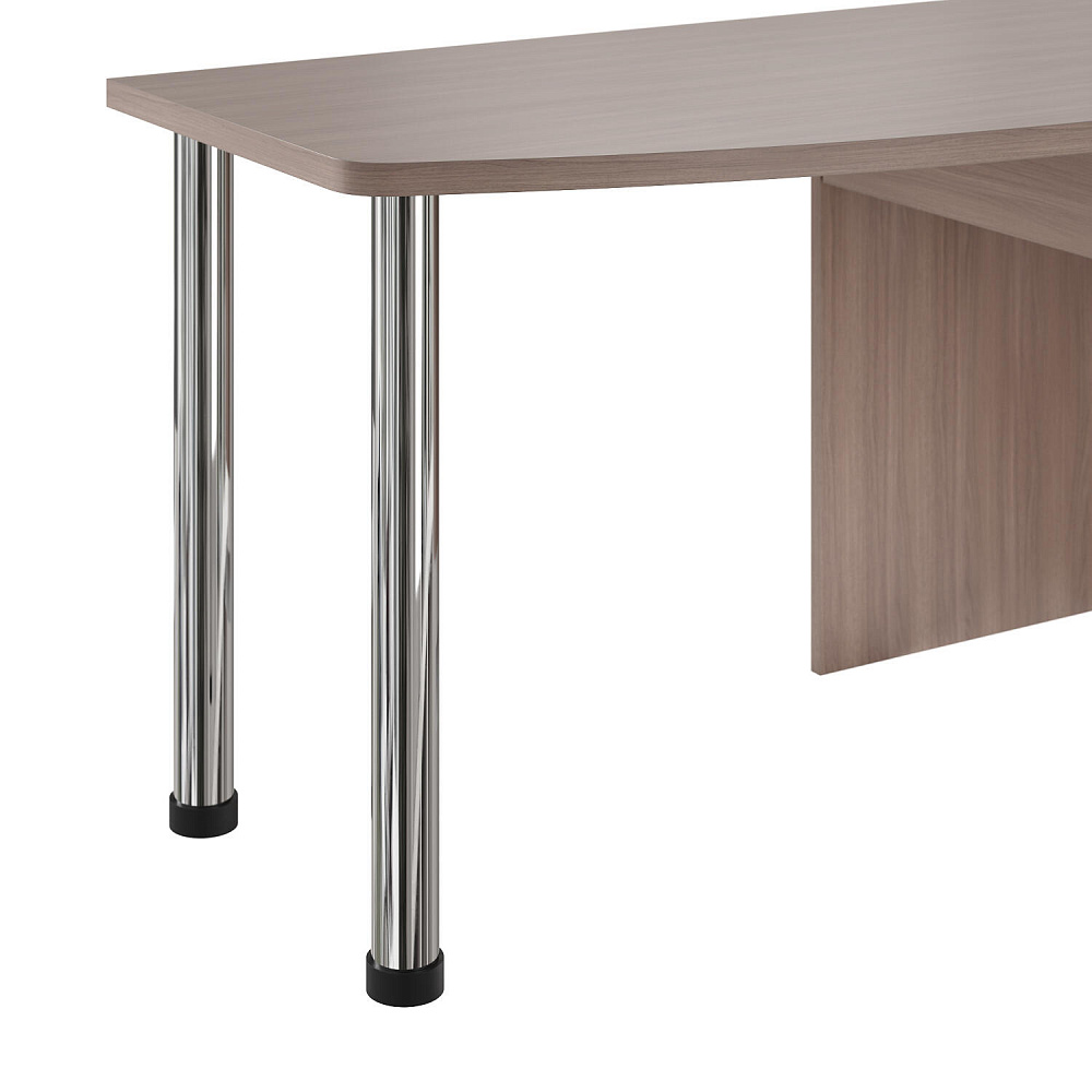 Хромированные опоры. С внешней стороны стола столешницу поддерживают две металлические регулируемые опоры, которые визуально облегчают конструкцию модели и позволяют устойчиво зафиксировать стол.