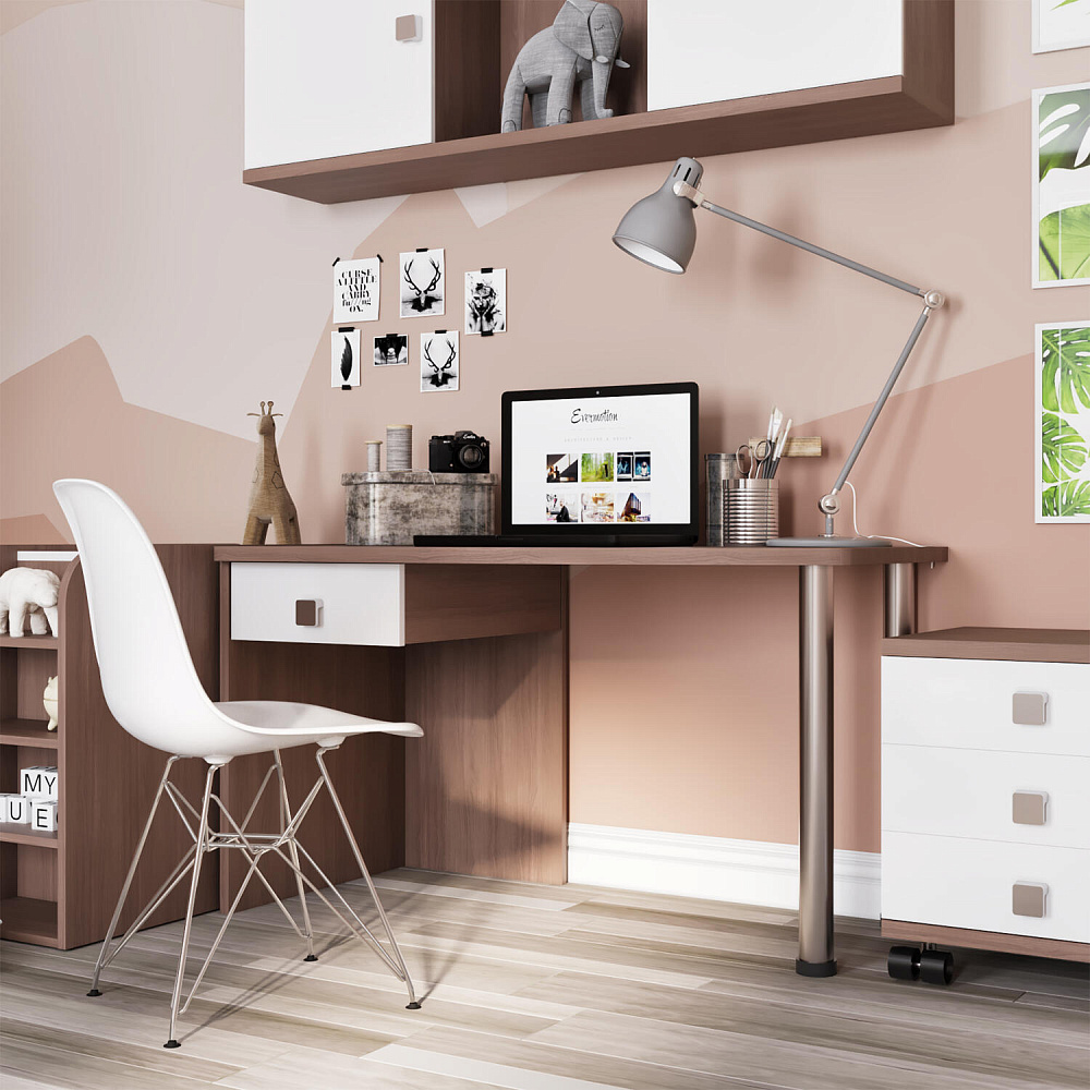 Эргономичная столешница. Просторная столешница закругленной формы позволяет поставить ноутбук, настольную лампу и разложить необходимые для учебы и творчества материалы.