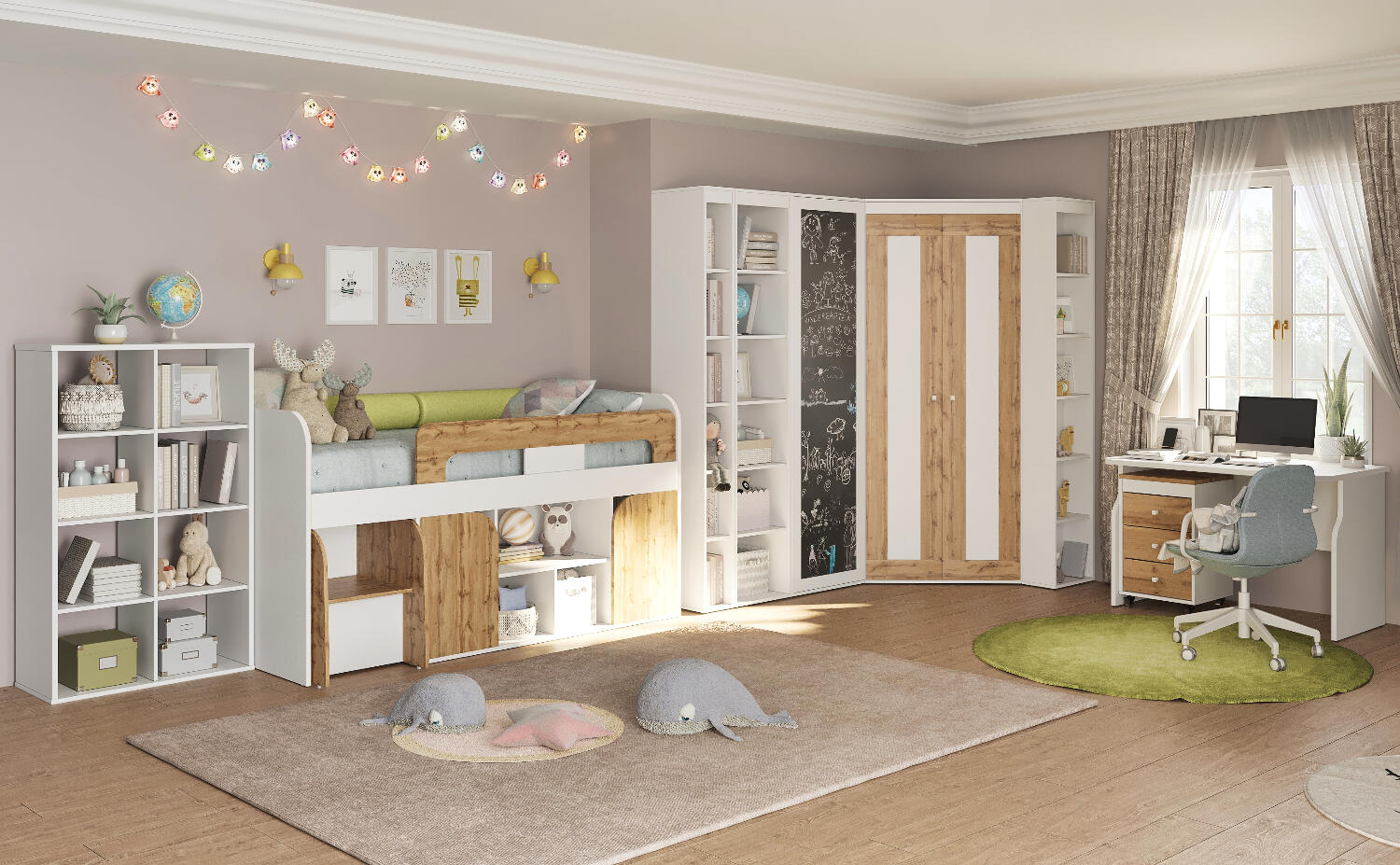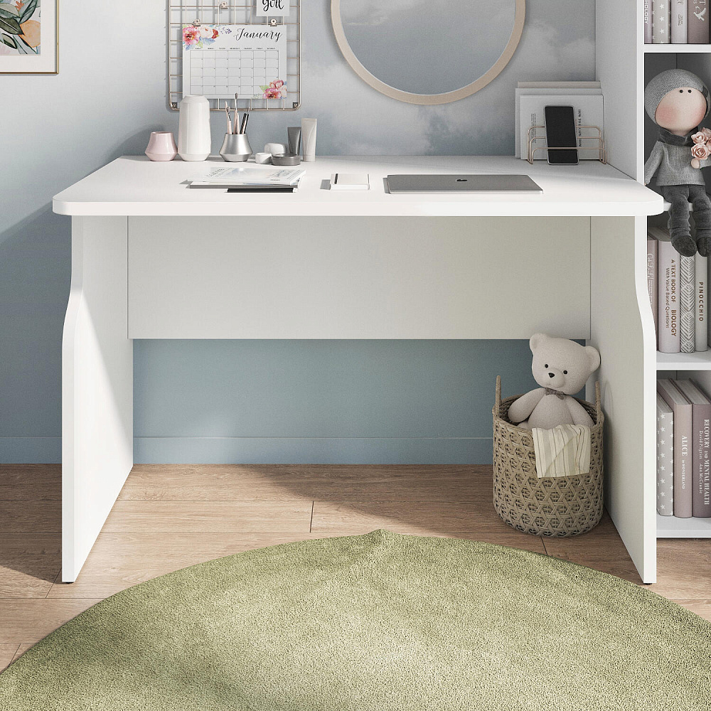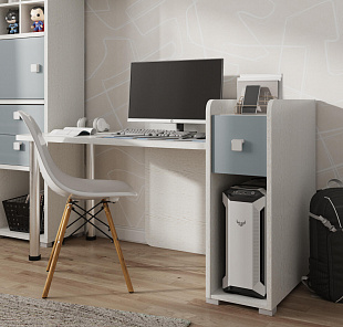 Белый письменный стол «Аллегро» для выполнения домашних заданий и работы с ноутбуком наполнит интерьер молодёжной комнаты светом и уютом. Базовая функциональность стола может быть расширена за счёт установки тумбы арт. 4660 с тремя выдвижными ящиками для хранения рабочих тетрадей, школьных принадлежностей и аксессуаров.
