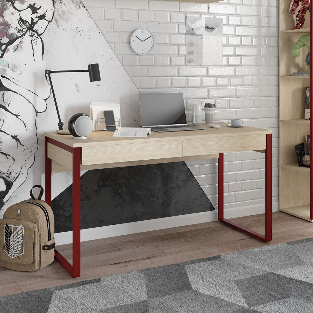 Письменный стол «Джелато» исполнен в цвете «дуб винченца» с двумя выдвижным ящиками, гармонично впишется в детскую комнату с интерьером в стиле лофт. Металлические опоры в цвете бордо ставят мягкий акцент, визуально делают стол более легким и невесомым. Коллекция «Джелато» удачно сочетает в себе стиль и комфорт.