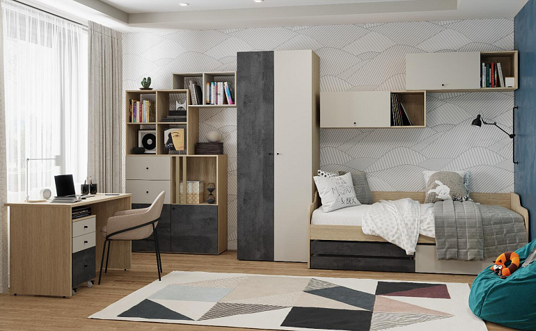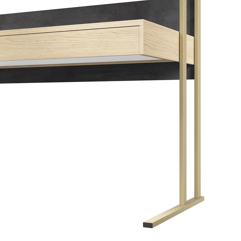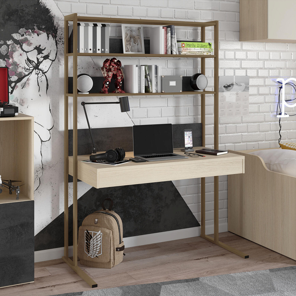 Письменный стол «Джелато» исполнен в цвете «дуб винченца» с одним выдвижным ящиком, гармонично впишется в детскую комнату с интерьером в современном стиле. Металлические опоры визуально делают стол более легким и невесомым. Открытые полки в цвете темного бетона с выраженной текстурой, гармонично перекликаются с матовым «Кашемиром», дополняя друг друга. Коллекция «Джелато» удачно сочетает в себе стиль и комфорт.