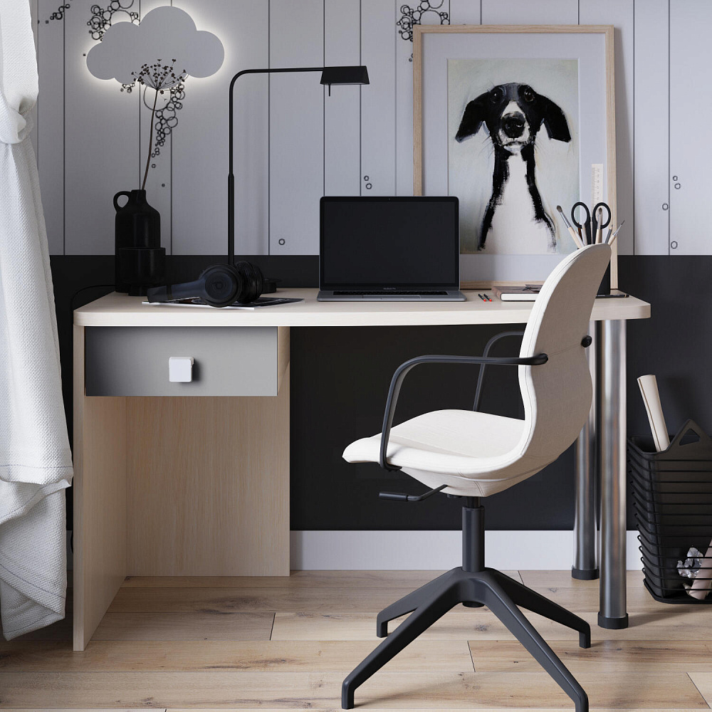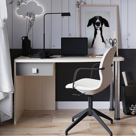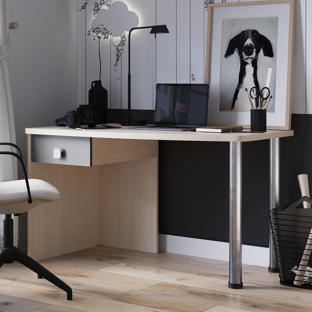 Эргономичная столешница. Просторная столешница закругленной формы позволяет поставить ноутбук, настольную лампу и разложить необходимые для учебы и творчества материалы.