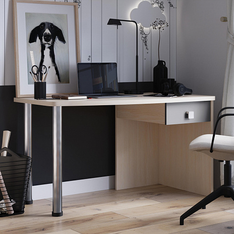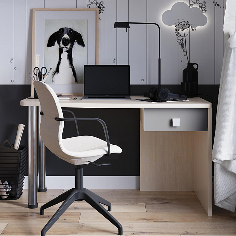 Эргономичная столешница. Просторная столешница закругленной формы позволяет поставить ноутбук, настольную лампу и разложить необходимые для учебы и творчества материалы.