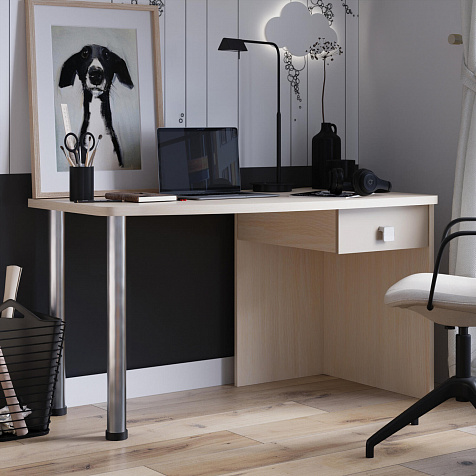 Эргономичная столешница. Просторная столешница закругленной формы позволяет поставить ноутбук, настольную лампу и разложить необходимые для учебы и творчества материалы.