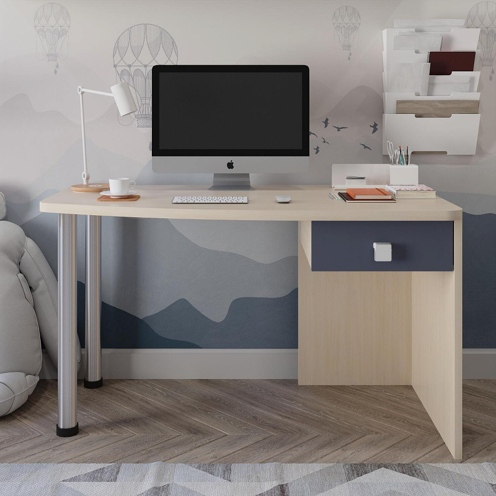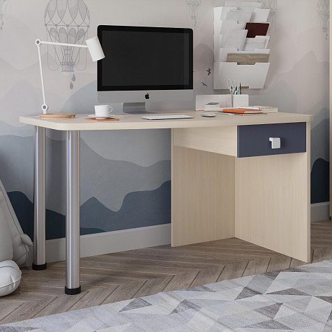 Эргономичная столешница. Просторная столешница закругленной формы позволяет поставить ноутбук, настольную лампу и разложить необходимые для учебы и творчества материалы.