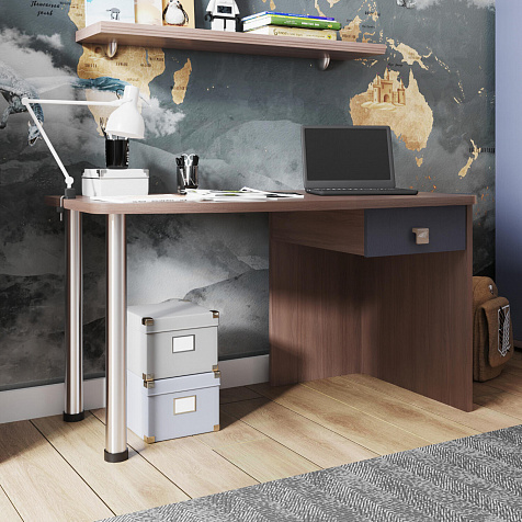 Эргономичная столешница. Просторная столешница закругленной формы позволяет поставить ноутбук, настольную лампу и разложить необходимые для учебы и творчества материалы.