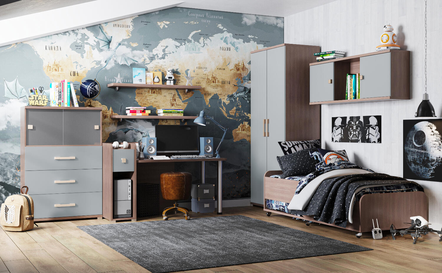Матовый фасад ящика. Выполнен в стильном приглушённом цвете, станет украшением любой детской комнаты. Такие фасады отличаются отсутствием бликов, на матовом покрытии менее заметны отпечатки пальцев.