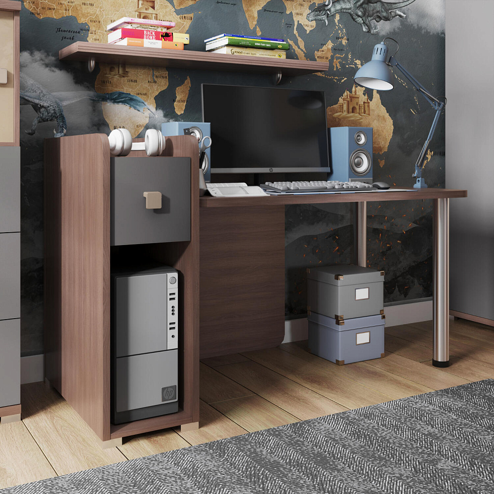 Левый компьютерный стол «Тиана» можно установить как в угол комнаты, так и к стене. Эргономичная модель с вместительной столешницей и продуманной системой хранения позволит организовать практичное рабочее место в детской или молодёжной комнате.