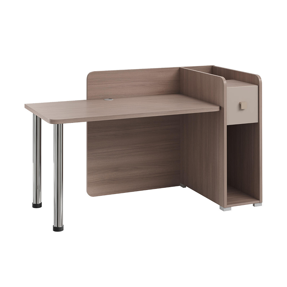 Просторная столешница с отверстием для проводов. Широкая столешница позволяет установить компьютер и разложить необходимые для учёбы и творчества материалы. В крышке стола предусмотрено отверстие для удобного вывода проводов.