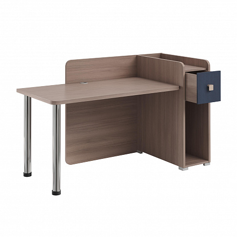 Тумба с нишей, ящиком и органайзером. Функциональная тумба имеет пространство для установки системного блока, над ней предусмотрен ящик, а за ящиком есть органайзер с двумя отделениями для канцелярских мелочей.