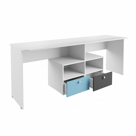 Двойной стол. Стол имеет две рабочие зоны тем самым поможет организовать комфортный учебный процесс для двоих детей.