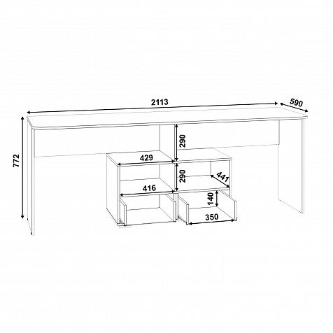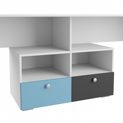Тумбы с ящиками и полками. Под столешницами есть секции с ящиками и открытыми отделениями. Они удобны для хранения канцелярских принадлежностей и других мелочей.