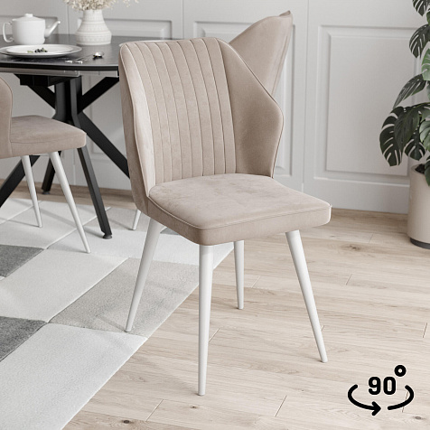 Стул «Берг» с поворотом на 90 градусов украсит интерьер кухни и сделает отдых комфортным. Модель выделяется закруглённой спинкой с вертикальными линиями и боковыми частями, имитирующими подлокотники. Благодаря поворотному механизму можно удобно расположиться на стуле, не перемещая его по полу. Комплект из четырёх-шести стульев станет гармоничным дополнением к кухне и создаст уютную обстановку.