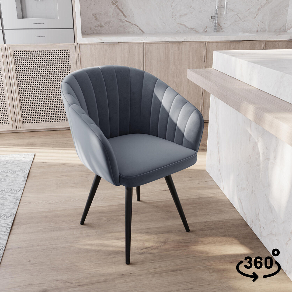 Мягкий стул «Микки» выделяется аккуратной строчкой на спинке и высокими подлокотниками. Обивка выполнена из велюра с приятной матовой фактурой. Благодаря поворотному механизму можно удобно расположиться на стуле, не перемещая его по полу. Стул станет идеальным дополнением как для кухни, так и для гостиной или спальни.