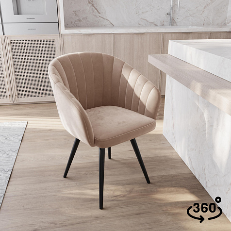 Мягкий стул «Микки» выделяется аккуратной строчкой на спинке и высокими подлокотниками. Обивка выполнена из мягкого велюра с элегантным блеском. Благодаря поворотному механизму можно удобно расположиться на стуле, не перемещая его по полу. Стул станет идеальным дополнением как для кухни, так и для гостиной или спальни.