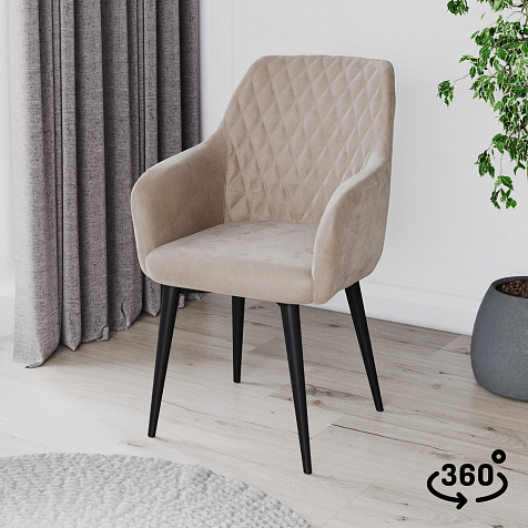 Мягкий стул с подлокотниками «Роберт» от итальянского дизайнера-конcтруктора Giovanni Lella сделает отдых комфортным и украсит интерьер. Модель выделяется ромбовидной строчкой на внутренней части спинки и узкими подлокотниками. Благодаря поворотному механизму можно удобно расположиться на стуле, не перемещая его по полу. Комплект из 4-6 стульев станет изящным акцентом в интерьере кухни.