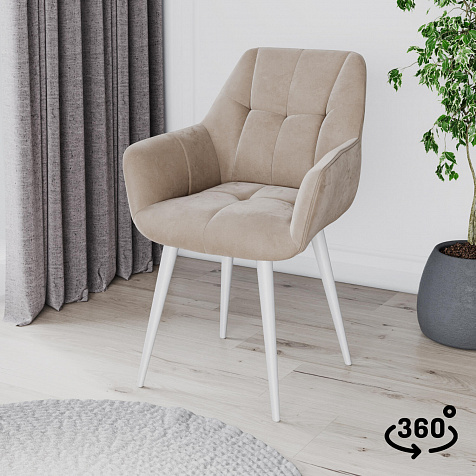 Мягкий стул «Рич» поможет создать комфортную обеденную зону на кухне или гостиной. Дизайн модели отличается аккуратными утяжками и строчкой на спинке, сиденье и подлокотниках. Обивка стула выполнена из велюра с элегантным блеском. Благодаря поворотному механизму стул не нужно отодвигать от стола, достаточно повернуть сиденье вправо или влево. Модель можно использовать в качестве дополнения к письменному или туалетному столу.