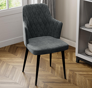 Мягкий стул «Хант» от итальянского дизайнера-конcтруктора Giovanni Lella украсит интерьер кухни и сделает отдых комфортным. Модель выделяется круглой спинкой с ромбовидной строчкой и угловыми короткими подлокотниками. Задние ножки расположены под углом и визуально продолжают изгиб подлокотников. Благодаря поворотному механизму можно удобно расположиться на стуле, не перемещая его по полу. Комплект из 4-6 стульев станет изящным акцентом в интерьере кухни.