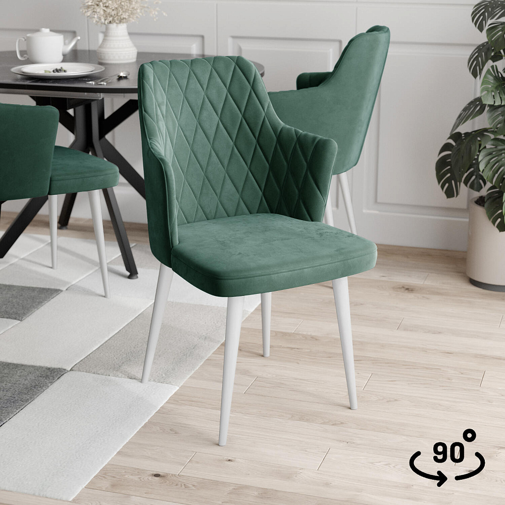 Мягкий стул «Хант» от итальянского дизайнера-конcтруктора Giovanni Lella украсит интерьер кухни и сделает отдых комфортным. Модель выделяется круглой спинкой с ромбовидной строчкой и угловыми короткими подлокотниками. Благодаря поворотному механизму можно удобно расположиться на стуле, не перемещая его по полу. Комплект из 4-6 стульев станет изящным акцентом в интерьере кухни.
