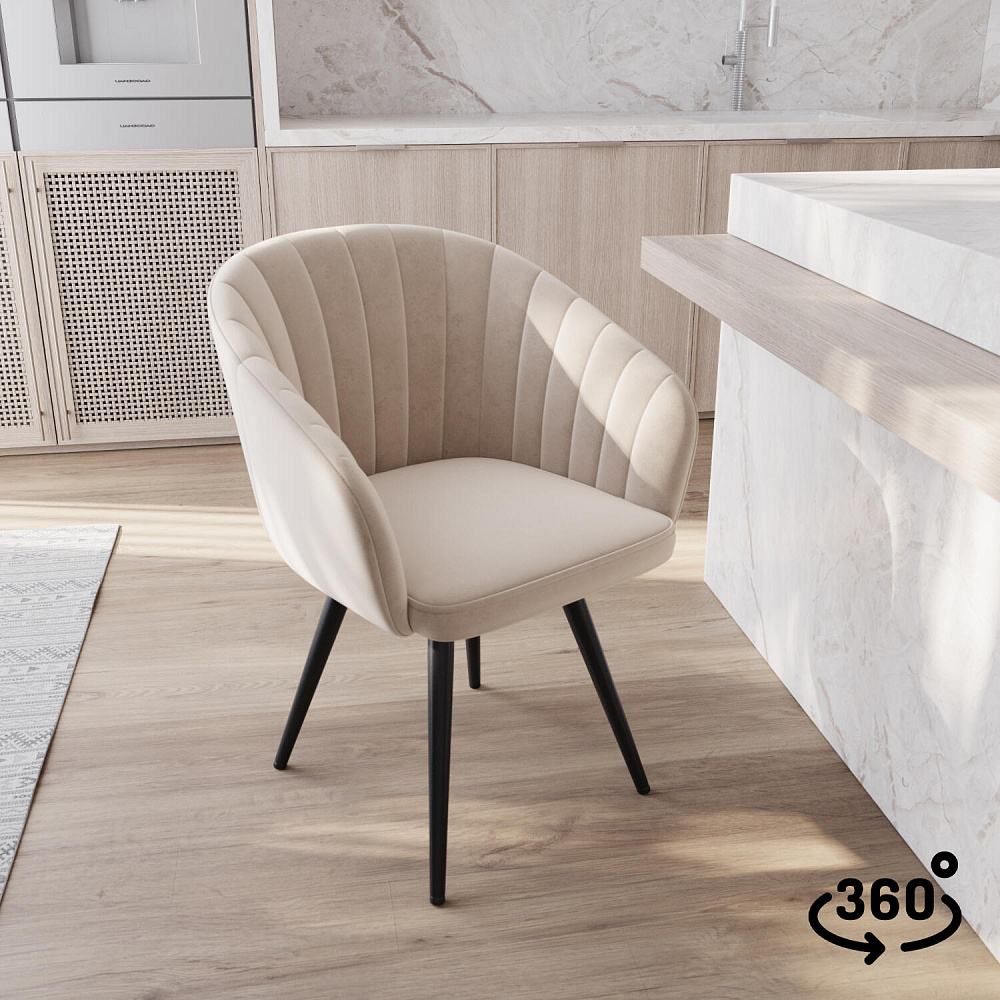 Мягкий стул «Микки» выделяется аккуратной строчкой на спинке и высокими подлокотниками. Обивка выполнена из велюра с приятной матовой фактурой. Благодаря поворотному механизму можно удобно расположиться на стуле, не перемещая его по полу. Стул станет идеальным дополнением как для кухни, так и для гостиной или спальни.